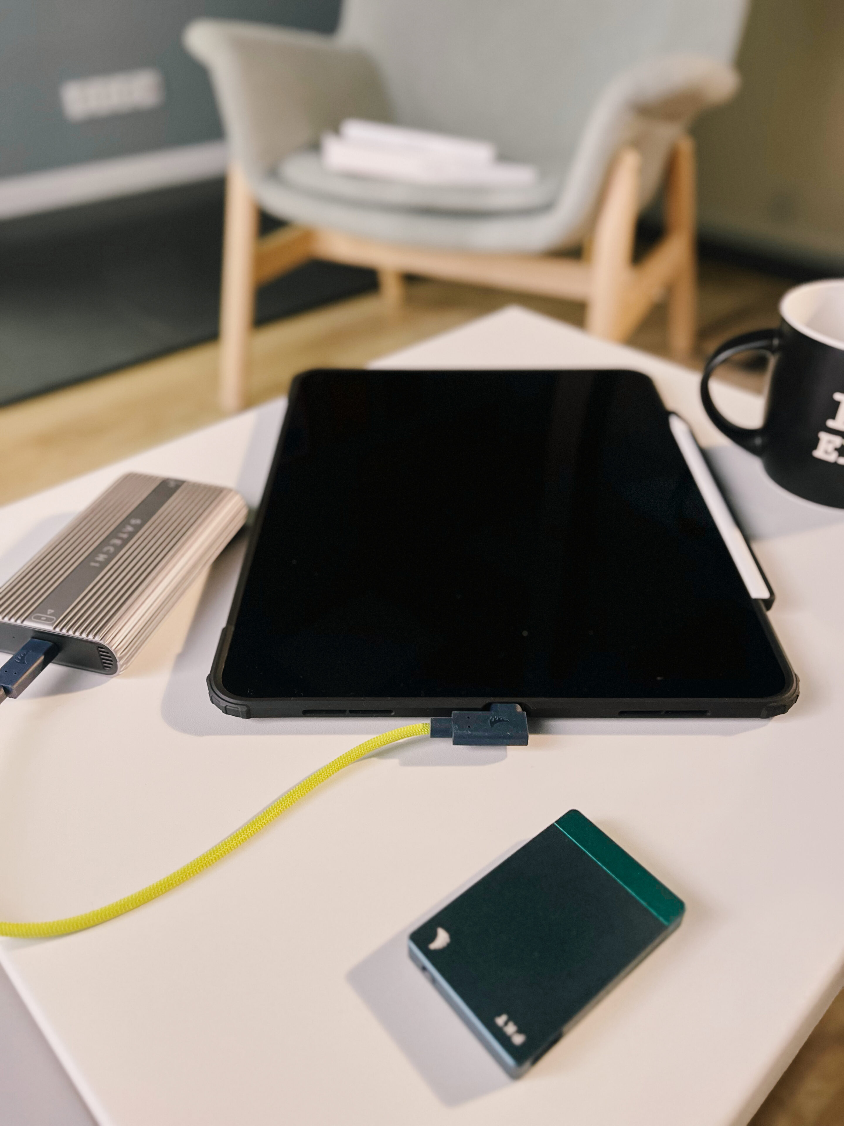 Nawet długość kabli (32 cm) nie jest przypadkowa – idealna do setupów biurkowych, lub jak moim Workflow – z iPadem, gdzie nie chcesz plątaniny kabli, ale też nie potrzebujesz mikro przewodu ( 32cm – bardzo fajna długość kabla ).